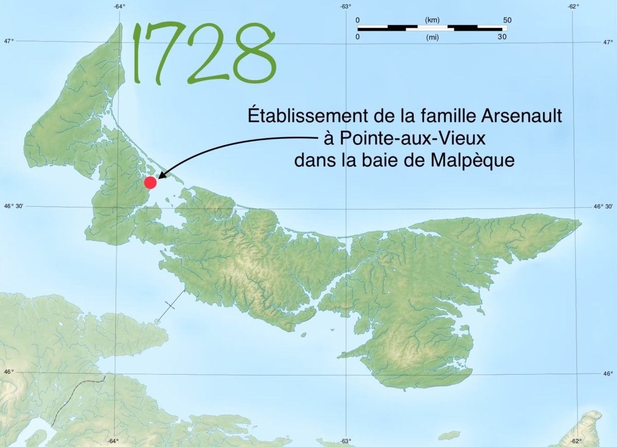 La colonie de Malpèque a été fondée par Pierre Arsenault II, son fils adulte Charles et leur compagnon Jean Lambert. Sur une période de trente ans, d’autres familles acadiennes ont suivi, bâtissant ensemble une communauté insulaire. En 1752, la colonie avait atteint plus de trente-deux ménages et plus de deux cents personnes. Outre les Arsenault, les familles Blanchard, Boudrot, Comeau, Daigre, DesRoches, Doucet, Dugas, Giroir, Laviolette, LeBlanc, Martin, Poirier et Richard y ont élu domicile. Un groupe minoritaire non acadien venait de l’Isle d’Orléans (Canada), de Bretagne et de Normandie, France.